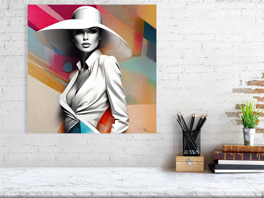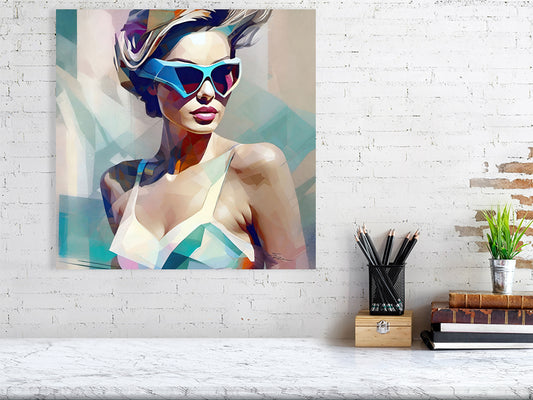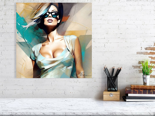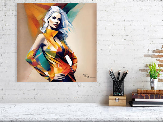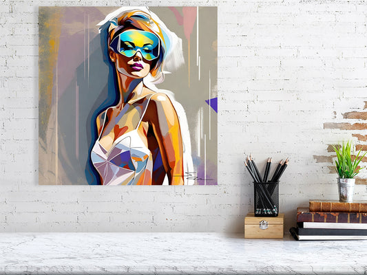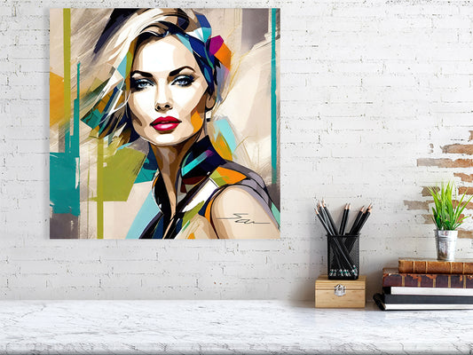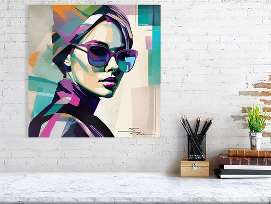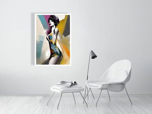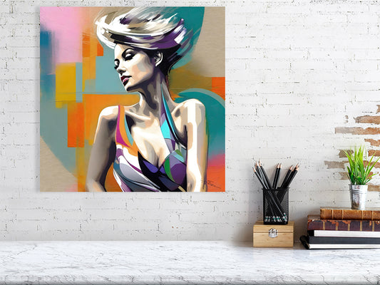 The artwork is an abstract cityscape, vividly capturing the essence of an...